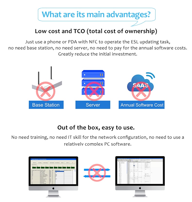 Bu, küçük işletmeler için NFC teknolojisine sahip bir dijital fiyat etiketidir. Uygulaması kolay, düşük başlangıç ​​maliyeti.